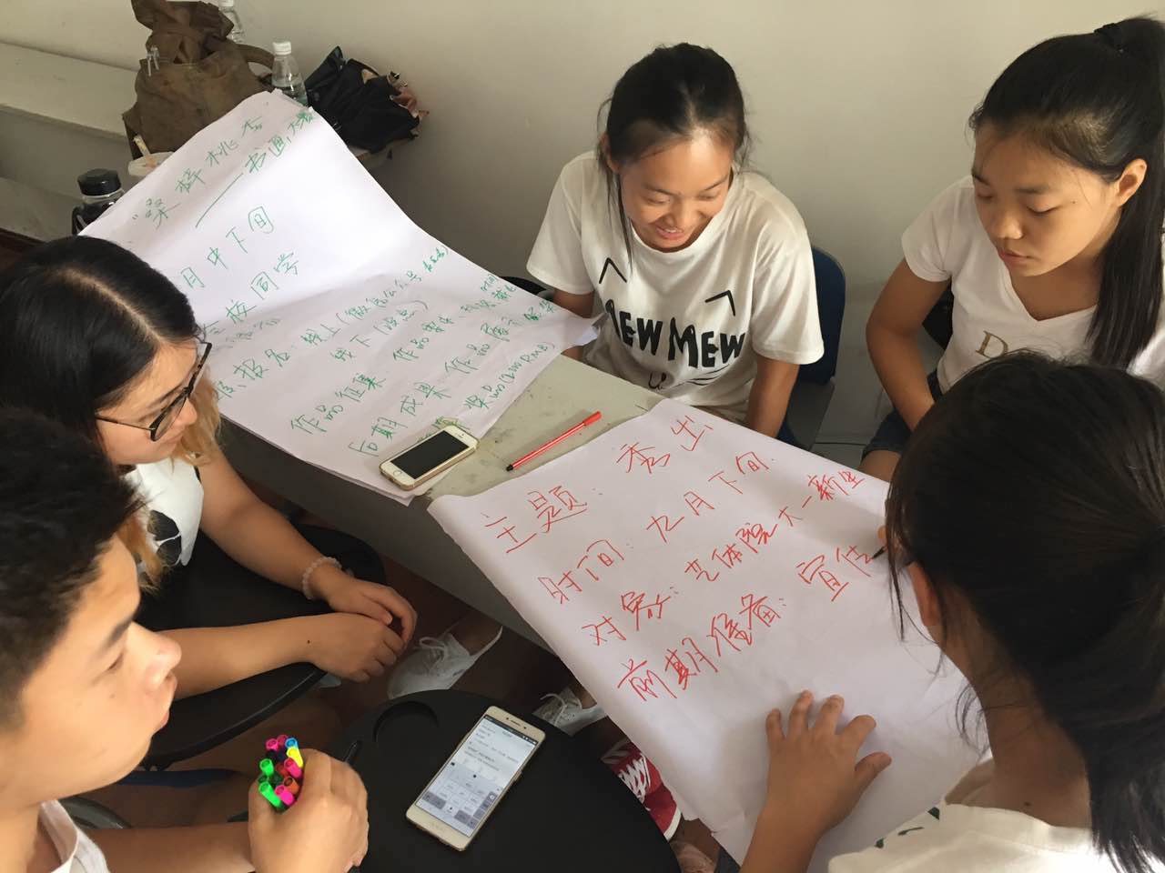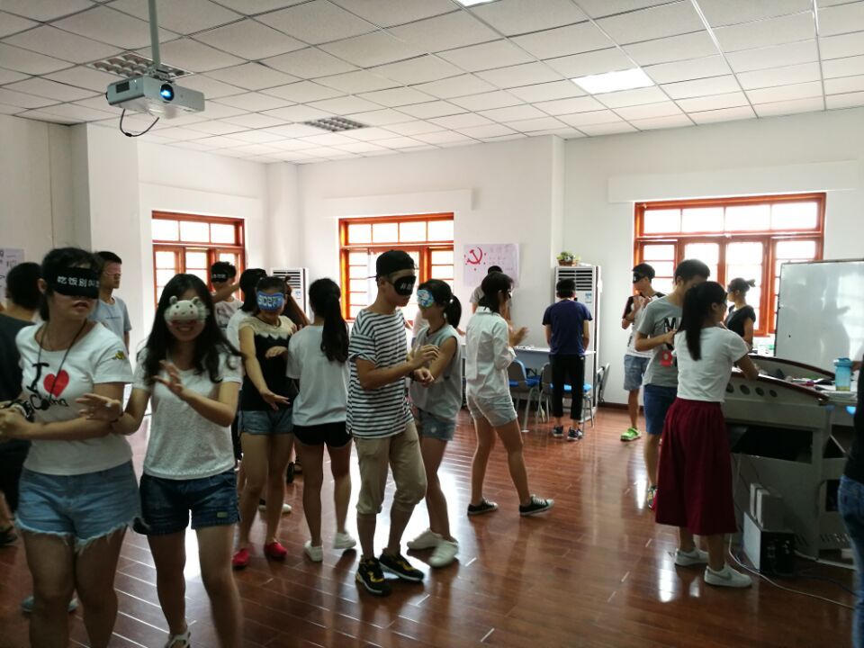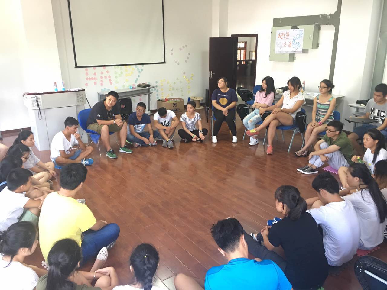 本次培训分为两期,一期两天,每期班30人,将班主任助理候选人和学生主干混编入班,随机分组学习。课程分为团队建设、学会讨论制定方案、学会沟通、学会协作解决问题四个专题,主要采取理论讲授研讨与体验式训练相结合的教学方式进行,课程中既有心理行为训练的游戏和交流,也有SYB创业培训的课程讲授方法,还有“七巧板”等经典管理培训游戏。