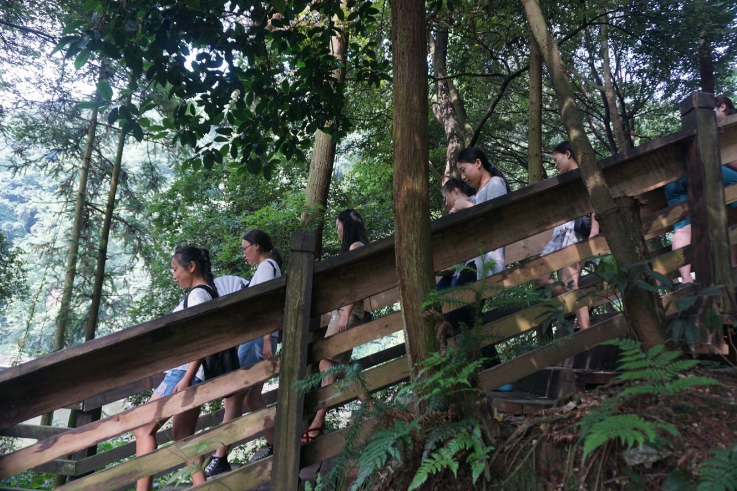 经过近两个小时的攀爬,“无忧”实践小组抵达青城第一峰老君阁。一路上,我们有很多感悟,鲁迅先生精辟地指出:“中国的根砥全在道教。”中国是一个有着五千年悠久历史与灿烂文化的文明古国,道家文化更是中国不可分割的一部分。 “道法自然,为而不争”曾对世界文明的发展产生深刻的影响。道教为心灵提供了一片清静的空地。面对纷繁的世界,我们常常迷失而不知所措,得也迷失,失也迷失,迷失在于我们不知道我们究竟追求什么,我们要做的就是学习道法,放下心,收起声,静静感受,余韵流长。