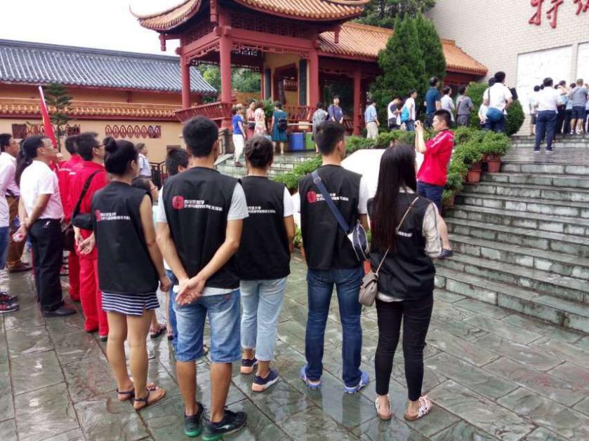 尽管天空中飘着小雨,但队员们的热情丝毫没有被破灭,而是跟着来黄继光纪念馆进行党日活动的公司和团队进行学习。看到党员们冒雨重温入党誓词等党日活动,队员们的内心也慷慨激昂。