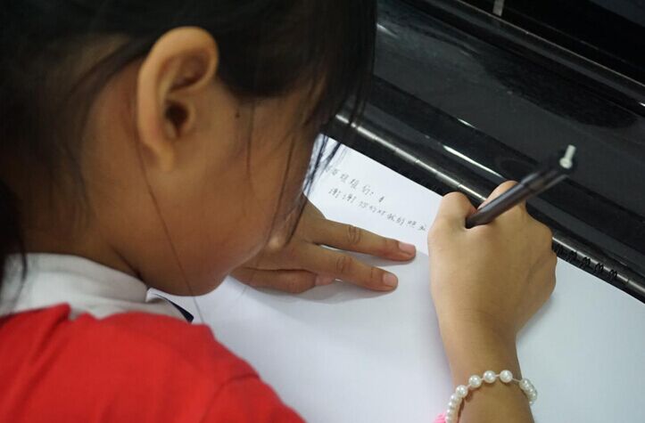 而最让人感动的一幕则是在队员们收拾场地的时候,一个二年级的学生安静的坐在一边写着什么,写完后交给队员很开心的离开了教室,随后队员打开折好的纸,发现上面写着“谢谢哥哥姐姐的照顾,今后长大了一定去四川找你们”短短一句话,队员们早已热泪盈眶。同学们,你好,再见!