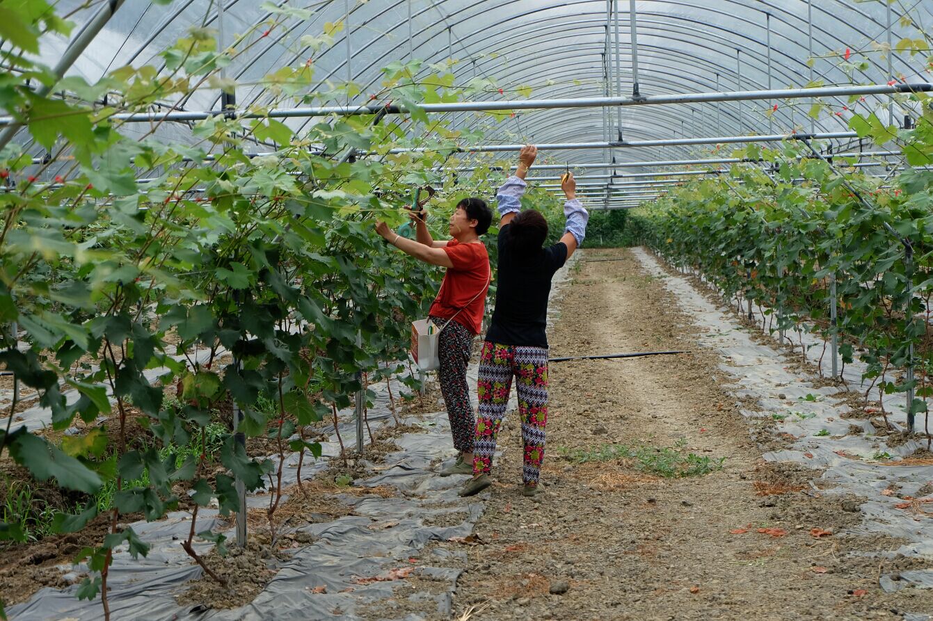葡萄走廊和辛勤劳作的工人 谭银 摄