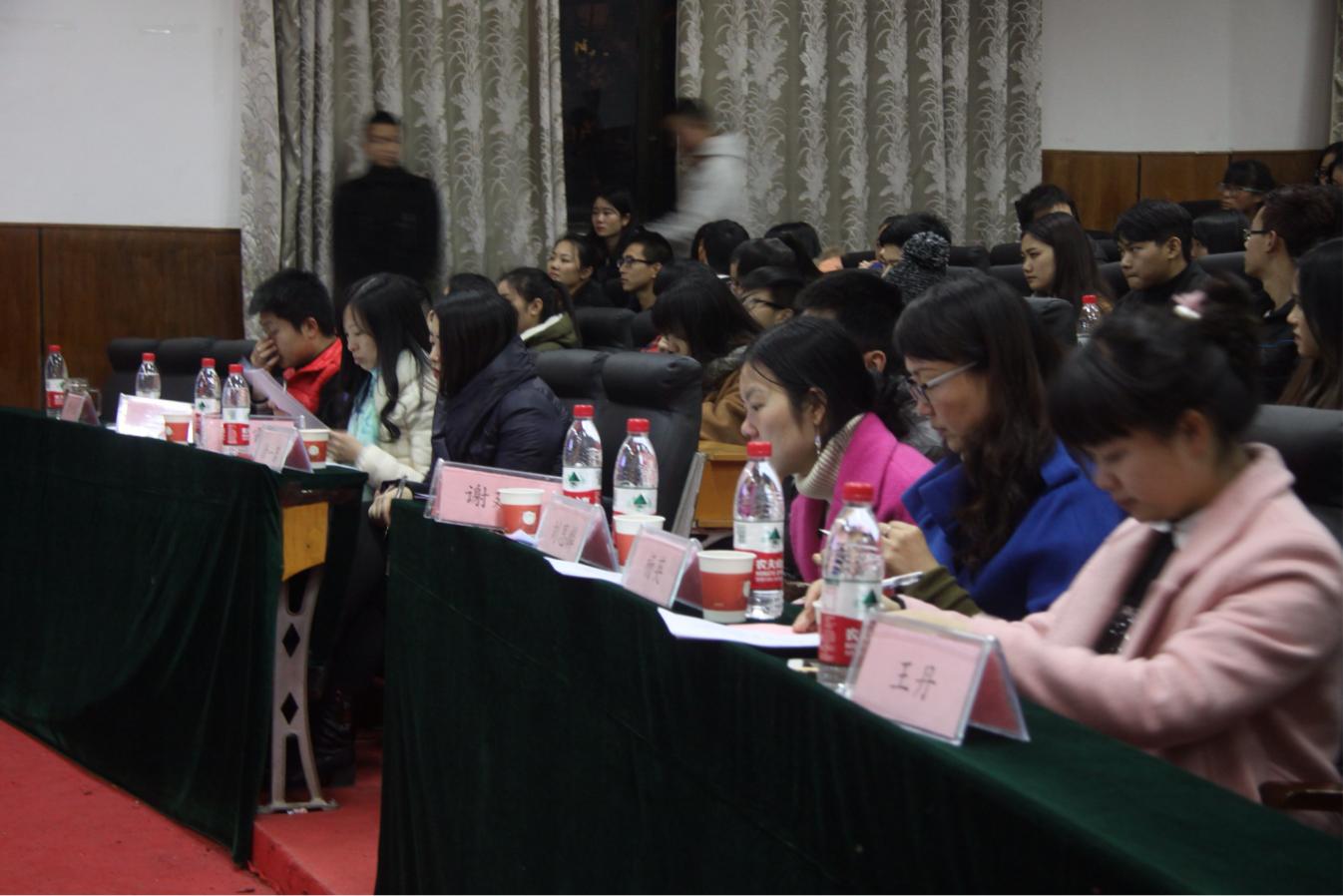 12月16日晚,“创青春”挑战杯预选赛暨创业孵化园入驻仪式在艺术楼报告厅举行。校就业与创业一科谢建平、王丹,校团委办公室刘思麟,体育系杨英,传播艺术系徐一茗,艺体院设计艺术系江霞,艺体院创意设计实验中心朱举,艺体院就业秘书曾令远共八位老师作为评委出席了仪式。两百余位艺体院的同学在报告厅中见证了精彩的答辩瞬间与孵化园入驻协议的签订。