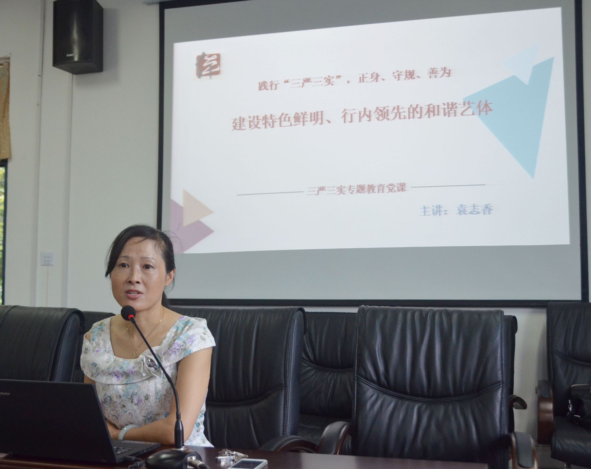 课上,袁志香结合当前学院工作实际,从开展“三严三实”专题教育的重要意义、科学内涵与内在逻辑开始阐述,指出按照中央精神,专题教育活动是党的群众路线教育实践活动的延展深化,是持续深入推进党的思想政治建设和作风建设的重要举措,是严肃党内政治生活、严明党的政治纪律和政治规矩的重要抓手。要以“既严以修身、严以用权、严以律己,又谋事要实、创业要实、做人要实”