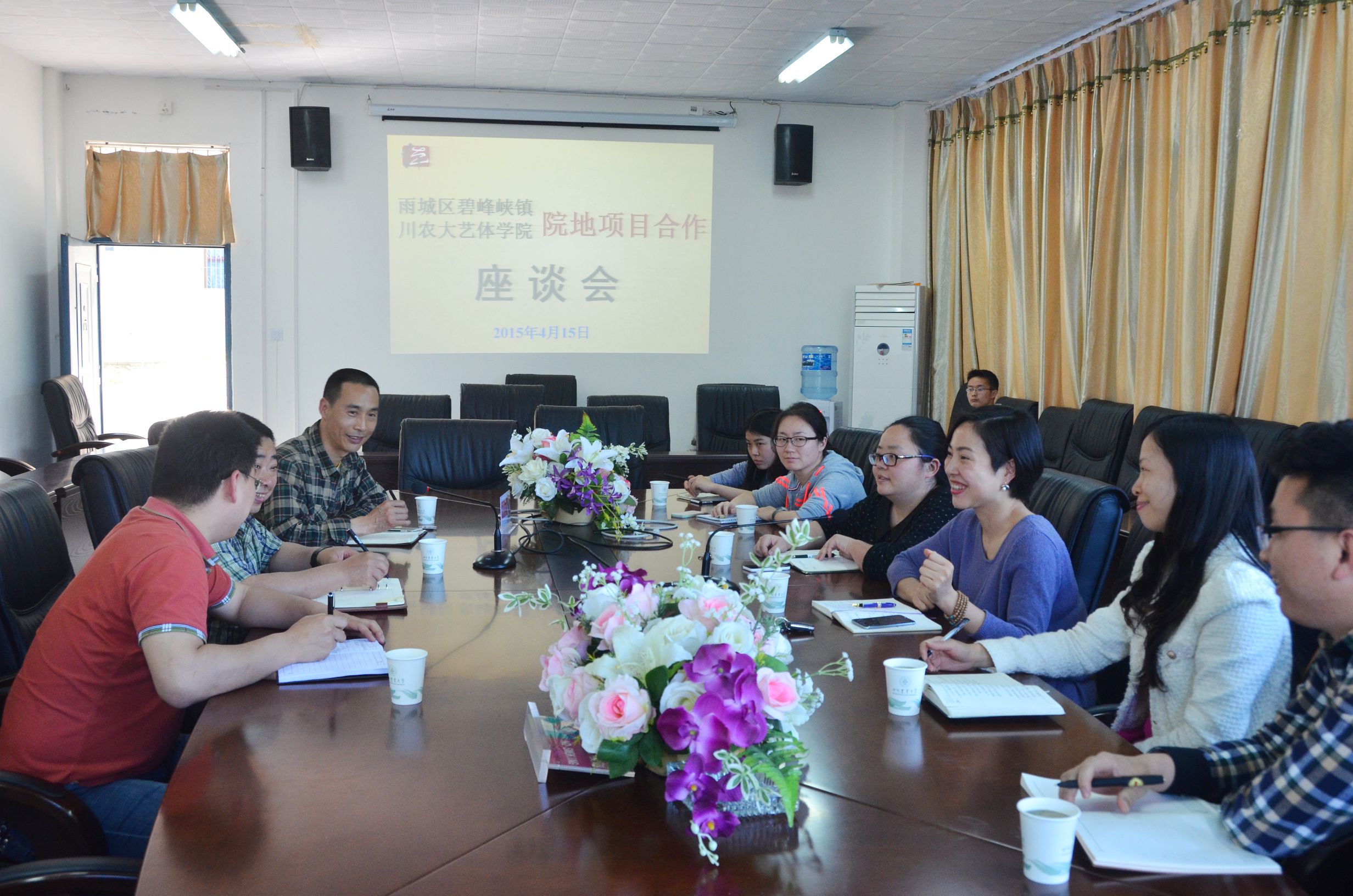 4月15日下午,雅安市雨城区碧峰峡镇党委书记杨炳煜、镇长陶兴平、党委副书记常耀攀一行3人来院就院地合作交流事宜进行座谈。学院副院长张丽君、设计艺术系主任江霞以及院行政、团总支负责人及相关专业教师参加会议。