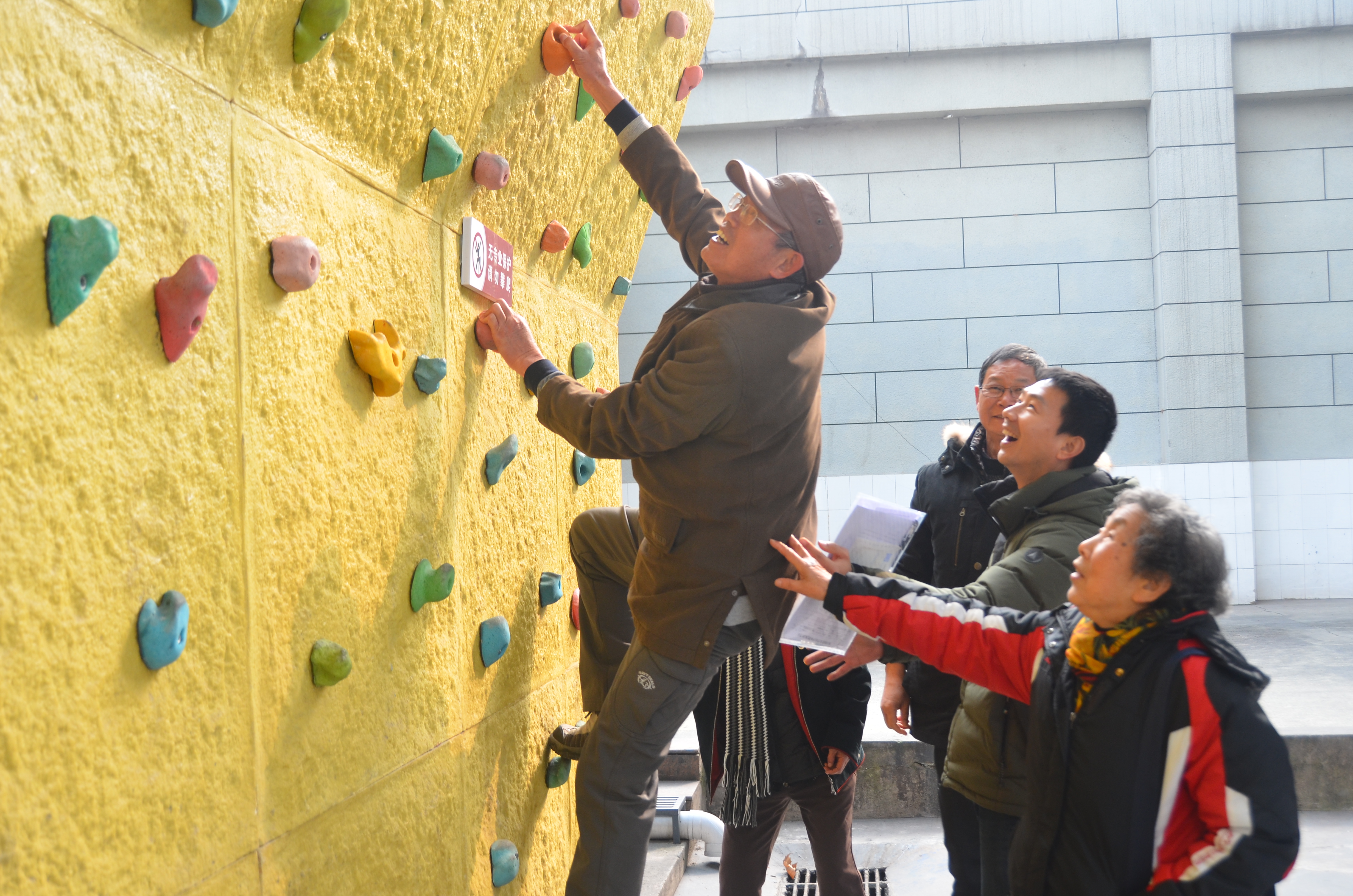 茶话会结束后,学院党政带领教职工老师们参观了攀岩墙和部分场馆,并合影留念。