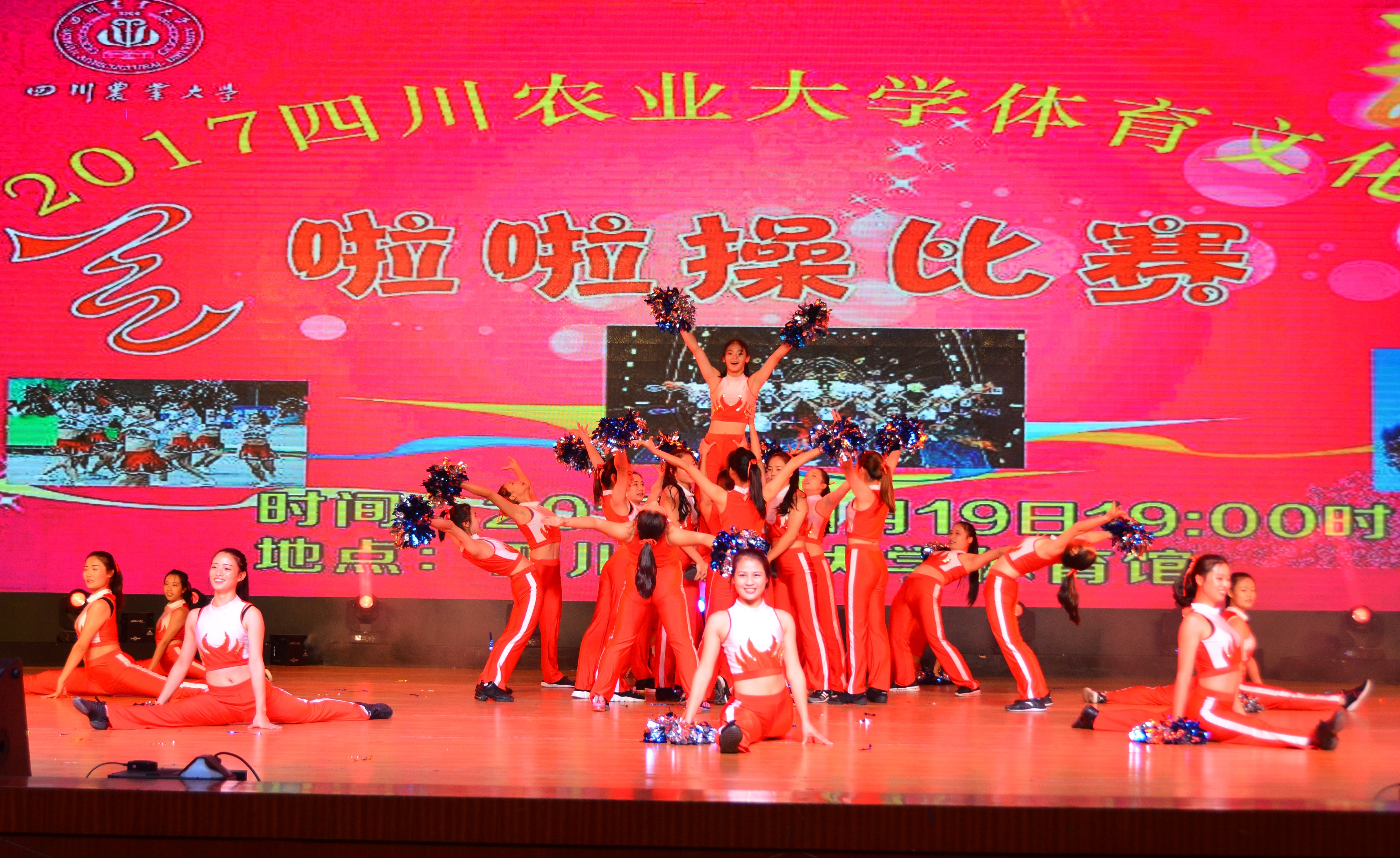 11月19日晚, 为丰富校园生活,营造体育文化氛围,促进大学生体质健康成长,由校体委主办,万象城awc888大学生体育服务与指导中心承办的2017年万象城awc888体育文化节舞蹈啦啦操比赛在体育馆内拉开帷幕。