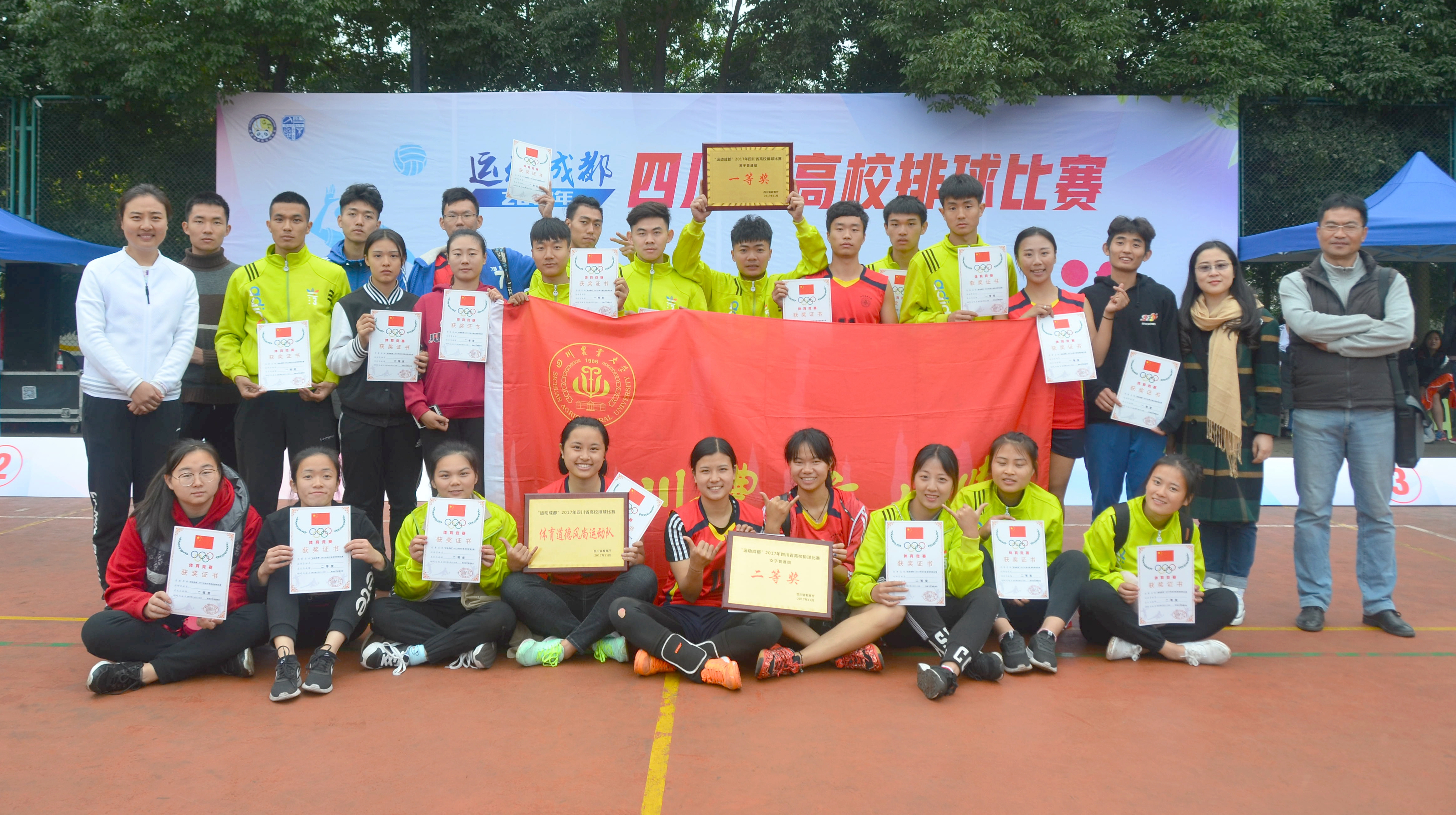 万象城排球队员在赛场上临危不乱,组织有序,战术全面。男队奋力勇夺男子组一等奖。女队取得二等奖并获得“体育道德风尚运动队”荣誉称号。他们在运动场中充分诠释了川农人顽强拼搏、团结协作、永不放弃的意志品质。