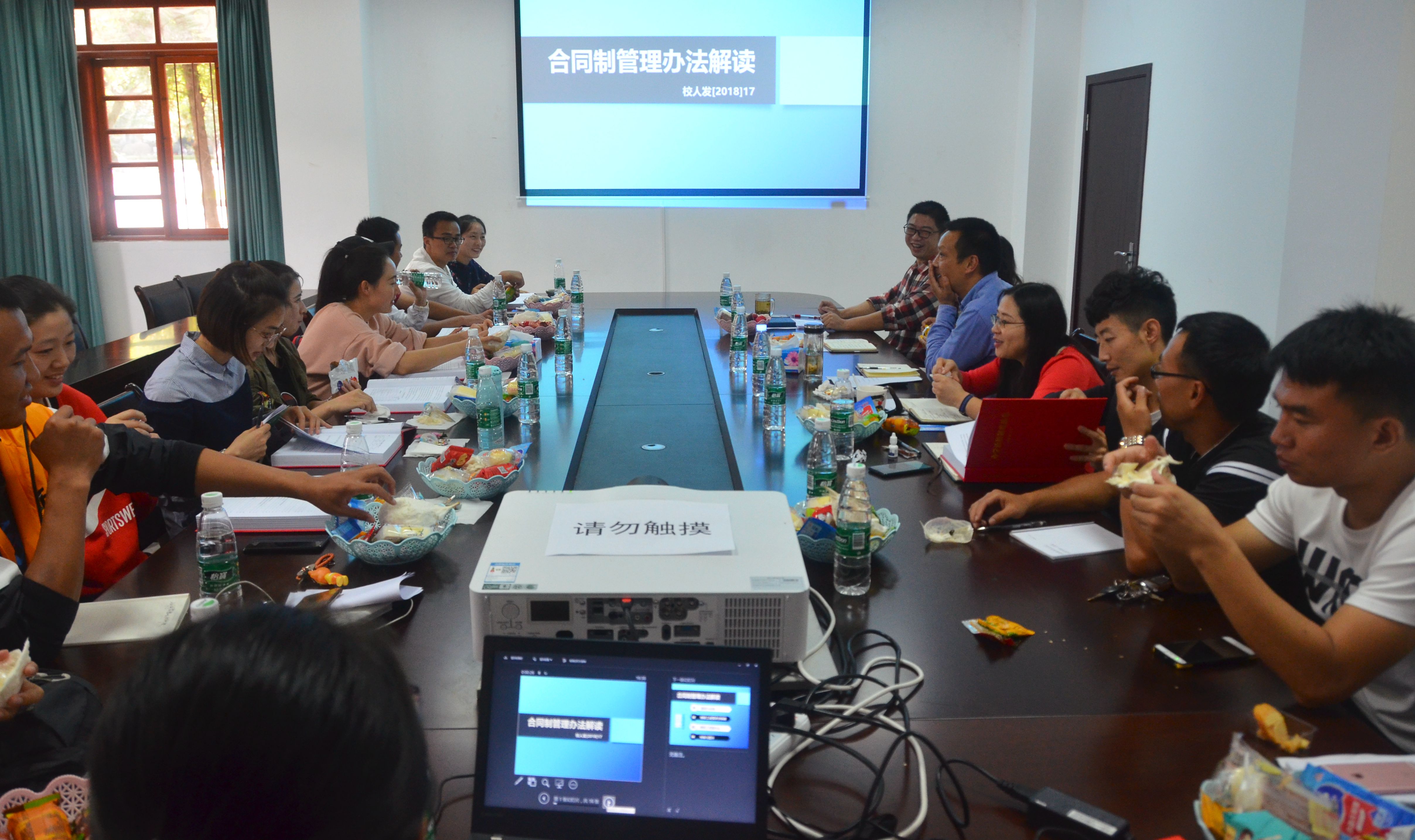会上,首先由行政办公室王盈阁老师对学校“红宝书”中《合同制聘用人员管理实施办法》、《教师工作业绩评分标准》、《教职工奖励办法》等文件进行了详细解读,其中包括了特聘专业技术岗位的申报等内容,使青年教师们充分感受到了学校对合同制教师的各方面的包容和支持。