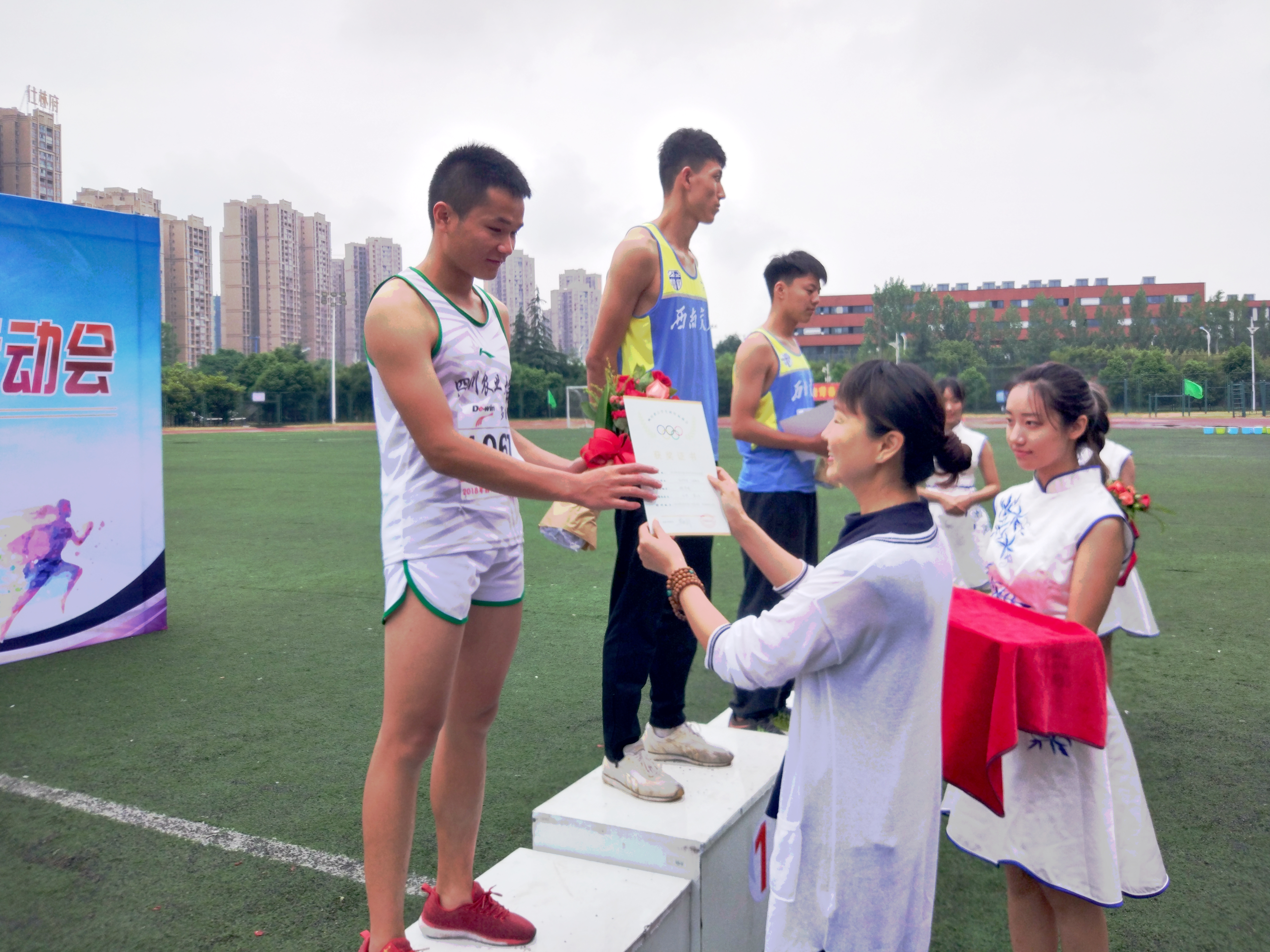 林学院的李汉森同学不负众望获得乙组男子铅球冠军。甲组包括了体育专业学生、高水平运动员和注册运动员学生,其竞争尤为激烈。万象城在没有高水平特招的情况下,万象城awc888体育教育2017级2班姚华明同学第一次参加省大学生田径运动会就以13.99米的好成绩获得甲组男子三级跳远第二名并打破万象城纪录。万象城awc888大四老将李拉奇同学站在了最激烈的男子甲组100米第三名的领奖台。陶刘同学在100米决赛中以微弱的差距获得第四名,但是他在预赛中创造了本次大赛100米最好成绩且以预赛第一名的成绩进入决赛。