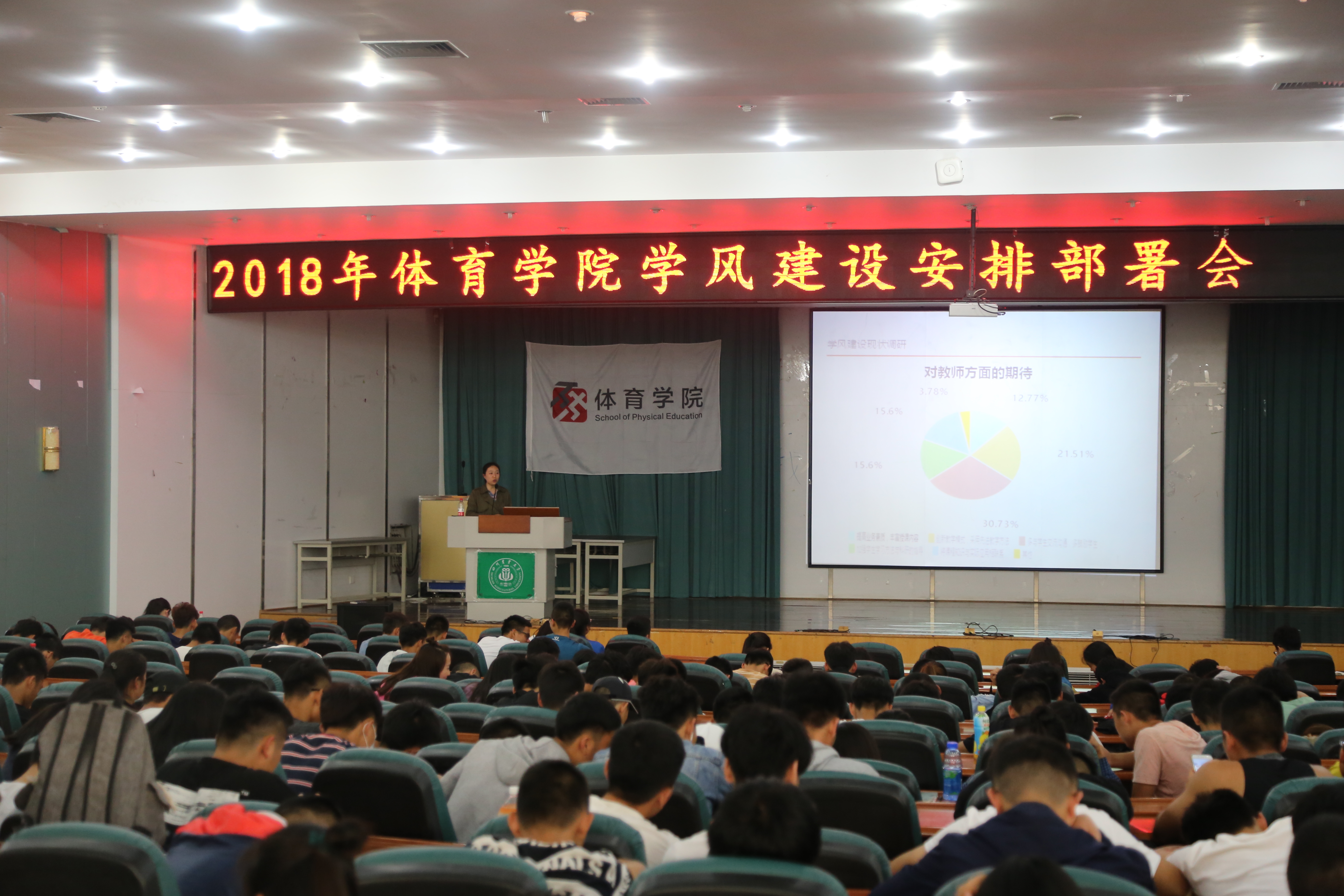 “大家在看了学校的学风建设数据后,想不想看看我们自己的呢?”匡薇问到。随后,党委办丁琳向全院师生通报上学期总体学习情况,学风建设调研结果,介绍学院学风建设实施方案。
