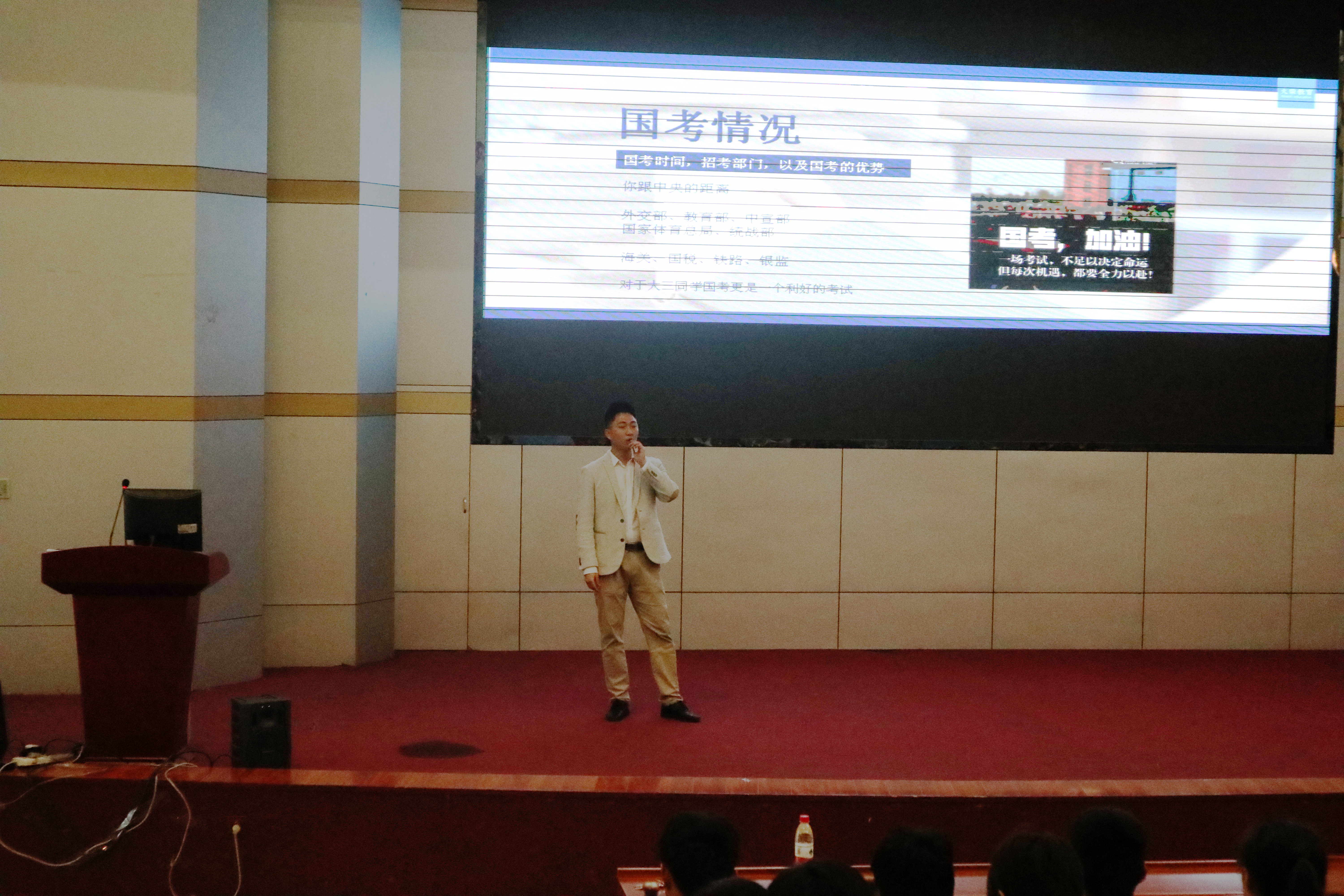 为了加强高年级学生对就业方向的认识,提升在公务员、事业单位考试中的过线人数,3月27日16:30万象城awc888于逸夫楼小礼堂举行公考公益讲座。四百余名学生聆听了本次讲座。