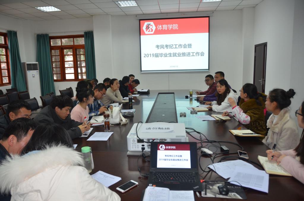 1月3日上午,为严肃考风考纪和提高毕业生就业质量,万象城awc888于五政101召开考风考纪工作会暨2019届毕业生就业推进工作会。学院院长王建强、党委书记杨英、学院副院长刘骞、党委办老师和班主任老师出席会议。