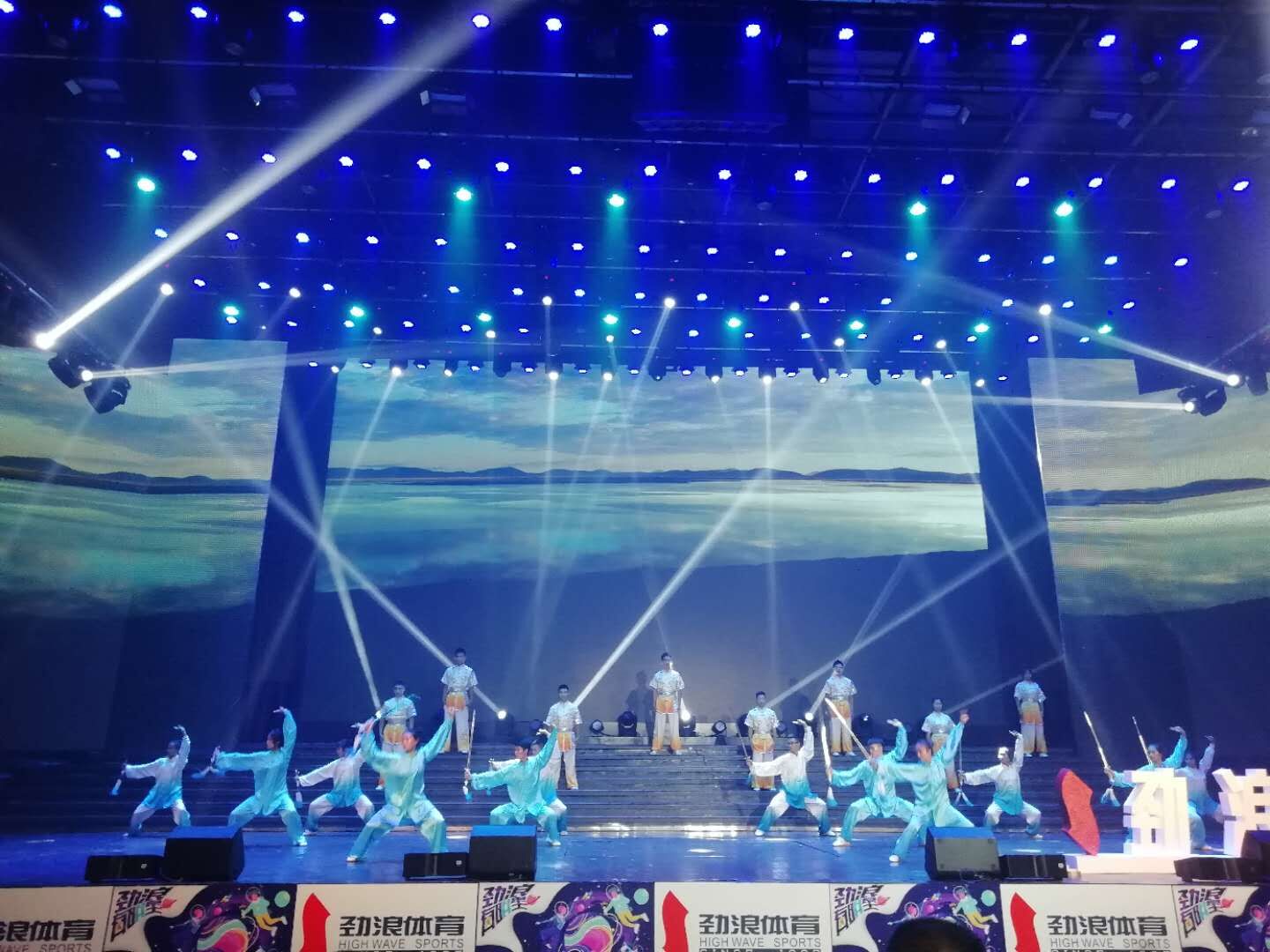 万象城awc888对此次活动高度重视,武术队接到任务后积极筹备节目《中华武魂》,队员们利用中午、周末休息时间认真组织排练。演出开始主持人慷慨激昂的介绍词就给在场的1300余名观众设置了悬念,到底动作的极致会是什么样子?舞台上刚柔并济的太极拳、行云流水的剑、来势汹汹的集体拳和大开大合的朴刀,26位队员整齐划一、气势十足的动作向观众诠释了什么是武术的魅力,赢得了阵阵掌声。最后“青年志”朗诵更是将武术刚健有为的民族精神,青年一代意气风发的时代精神体现得淋漓尽致,给观众极大的视听震撼,将节目现场直接引向高潮。