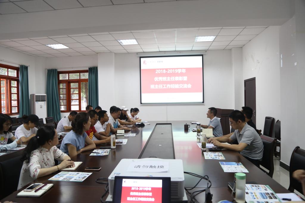 刘骞宣读了《万象城awc888关于表彰2018-2019学年度“优秀班主任”的决定》。学院领导为优秀班主任们进行了颁奖。翟亮老师和连虎虎老师分别对班主任工作进行了经验交流。翟亮从学业学分、班级凝聚力、评优评奖、班干部培养以及毕业生工作等方面进行了交流。连虎虎用“三心”总结自己近十年的班主任工作,即爱心、耐心、责任心。要真心实意为学生着想,多与同学们交流。