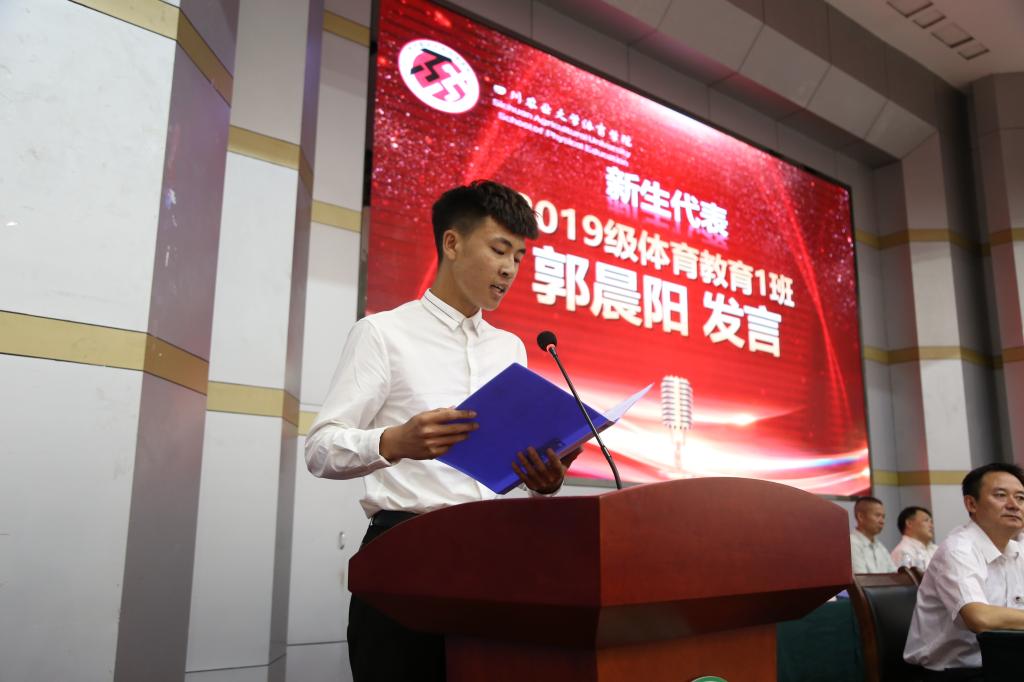 2019级体育教育一班的郭晨阳同学作为新生代表上台致辞,他提到“川农是一个全新的,梦开始的地方!”希望全体新生在大学可以勇于探索,敢于追求!