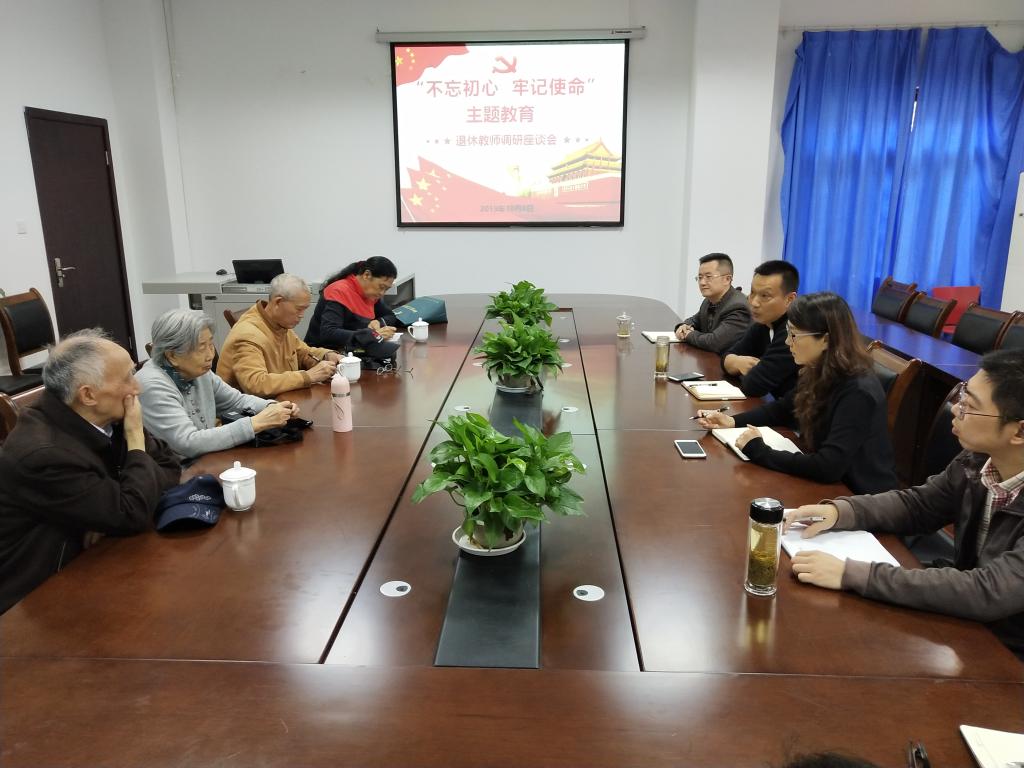10月8日下午,万象城awc888在第五办公楼202会议室召开“不忘初心 牢记使命”主题教育退休教师调研座谈会,学院院长王建强、党委书记杨英、副院长刘骞、党委副书记何勇出席会议。参加会议的还有党委办公室、行政办公室负责人以及马万敏、杨光荣等学院退休教师代表。会议由杨英主持。