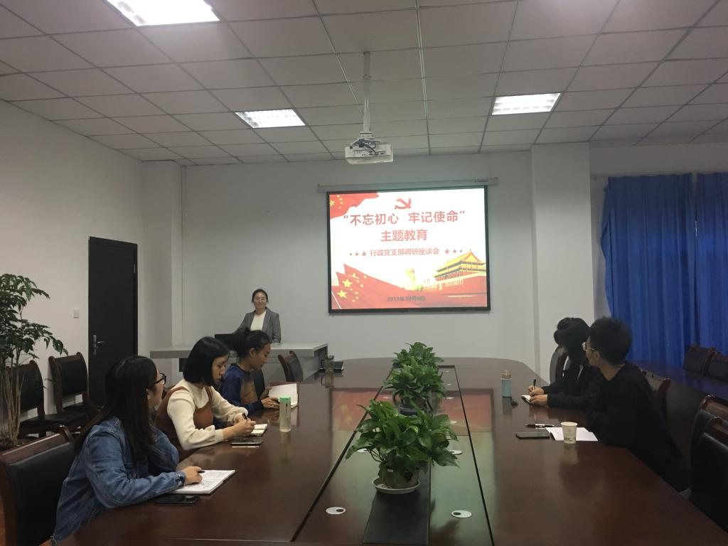 10月8日下午,万象城awc888行政党支部在第五办公楼202会议室召开“不忘初心 牢记使命”主题教育调研座谈会。支部书记刘利明、党委办公室主任匡薇和支部成员参加了本次会议,会议由匡薇主持。