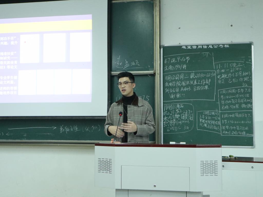 优秀学生标兵向欣悦从如何合理规划和利用时间切入,用亲身经历证明了惜时的重要性。李晨曦则以“做一名有文化的体育人”为题,着重讲述了赴美留学的经历。陈娜幽默的语言和对英语独到的学习方法赢来现场阵阵掌声。最后创业方面已经取得显著成效的朱文剑、擅长武术的万学丽结合自己的经验经历分别对创业精神和如何平衡学生会工作与专项学习进行了深入浅出的阐述。