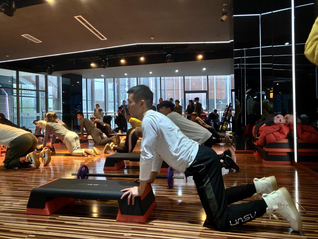 同学们到达后便分为四个小组在健身教练的带领下对米加时代健身房进行了全方位的参观与了解。随后便由健身房区域经理李教练与人力资源管理部张教练为大家答惑解疑。同学们对健身房的器材、场地、人员的管理、运营方式,以及就业问题展开了提问。为了让同学们切身感受健身的魅力,公司还组织了“动感单车”“杠铃操”等项目的体验活动,同学们也都跃跃欲试。