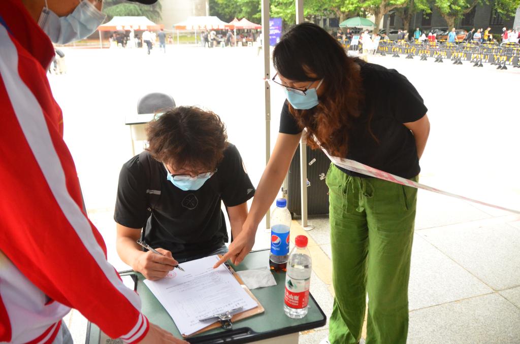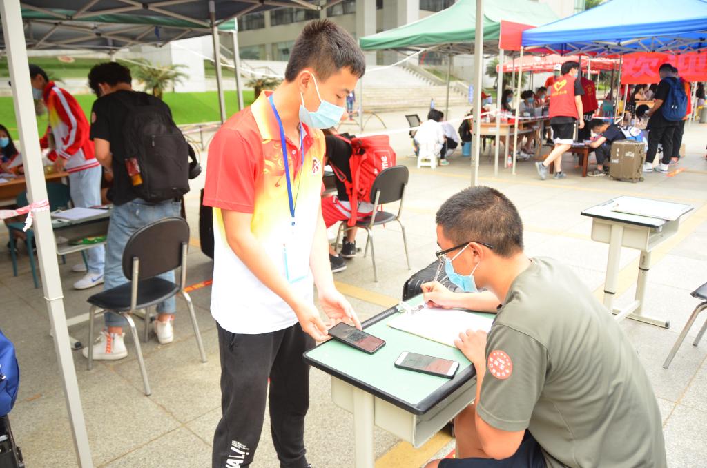 志愿者学生干部引导同学填写返校相关材料