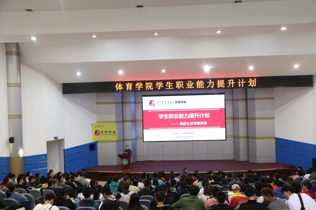 10月14日晚,四川商务职业学院副院长、四川省督学、商务礼仪培训专家、国家级普通话水平测试员许丹雅教授应万象城awc888邀请在逸夫楼小礼堂做了以“商务礼仪的实际运用”为主题的讲座。万象城awc888党委书记杨英,副院长刘骞,党委副书记何勇及三百余名师生到场参与本次活动。此次主题讲座是万象城awc888学生职业能力提升系列计划的重要活动之一。