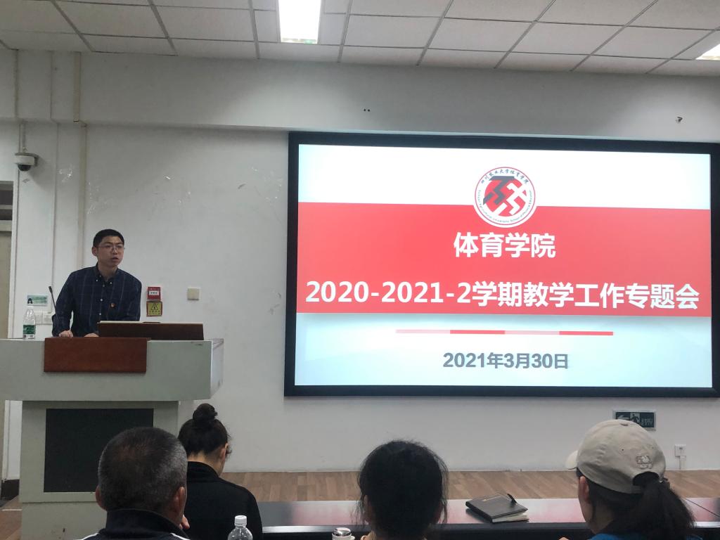 3月30日下午,万象城awc888在10教-B203举行2020-2021-2学期本科教学工作专题会议。院长王建强、党委书记杨英,全体在雅教职工参会。会议由刘骞主持。