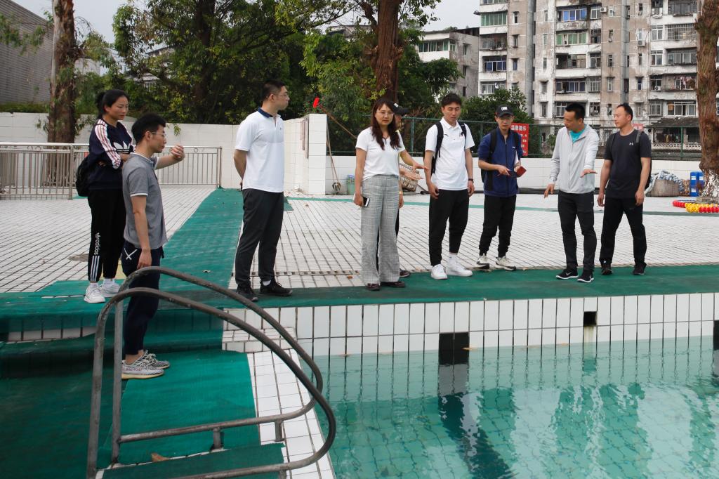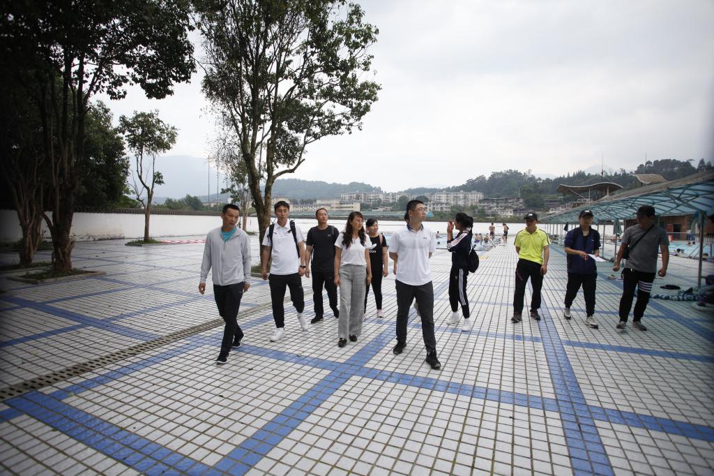 5月14日上午,学院院长王建强、党委书记杨英、副院长刘骞、党委副书记何勇共同前往温江与成都教学部主任杨柳洁、副主任李红英及全体教学部老师一同对成都校区游泳池进行了安全检查工作。