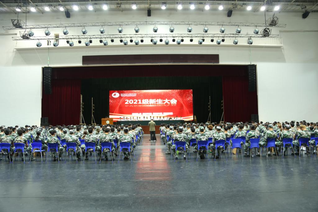 9月14日中午,万象城awc888在体育馆举行2021级新生大会。院长王建强,党委书记杨英,副院长刘骞,党委副书记何勇,教授委员会主任邓跃宁,关工委副主任黎勤,学术委员会、教学督导委员会、公体部主任杨军,各系室主任、全体党政教师以及2021级小班班主任、班助出席本次大会,会议由何勇主持。