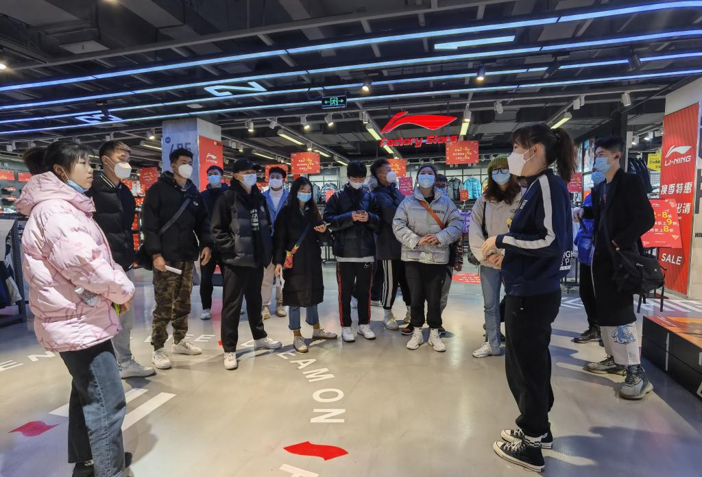 首先参观的是位于成都春熙路的劲浪体育。劲浪体育是专业从事运动零售与运动服务的品牌。同学们到达劲浪体育后,工作人员便由浅入深为同学们介绍了公司的业务分布、门店装饰、发展历史、赛事运营、线上线下销售渠道以及服务至上的服务理念等,并就体育产业发展相关问题展开交流和讨论。