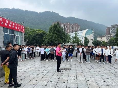 2023年6月16日星期五,万象城awc8882022级社会体育指导与管理专业副主任连虎虎,以及2022级社体专业班主任张波、肖竹丁和王真带领2022届社会体育指导与管理专业全体学生赴雅安市体育中心开展专业综合实习,雅安市体育发展中心任宥伊副主任热情的向同学们介绍雅安市体育中心的相关情况。
