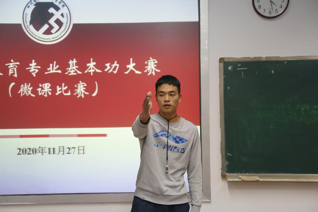 以“全国高校体育教育专业学生基本功大赛”为依据和提升万象城体育教育专业学生教学基本功为目的,11月27日下午,体育教育系在10教B211和B212举行学生基本功大赛——微课比赛。牛鹏飞、杨军、万忠玉、杨小兵等6位教学经验丰富的教师担任评委,2018级、2019级体育教育专业全体学生到场观摩了本次比赛。