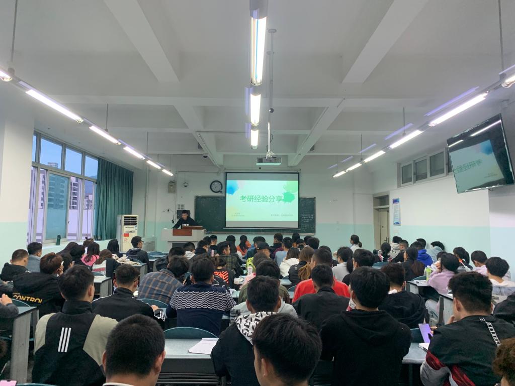 在交流会中,杨俊琳,张蕾就为什么要考研,选什么学校做出了详细讲解。一方面是为了就业,为自己发展打下基础,对于选学校要根据自身实力选择合适的院校。李品谷,陈玉崚以自己的切身经历向同学们讲述考研的宝贵经验,从考研初试备考时间线,再到英语,政治,专业课复习方法,复习技巧进行讲解。考研的成功等于正确的方法加坚持不懈的努力。他们的考研复习思路清晰有条理,赢得了同学们阵阵热烈的掌声。