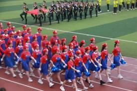 响亮的口号,那是冲锋的号角;整齐的步伐,那是运动的浪潮。开幕式上,身着红衣蓝裤的“马里奥”正步前进。当旗帜拂过头顶,方阵队员手中的气球随风飘扬,寓指学院运动员将不畏艰险,勇敢挑战,用行动诠释永不放弃的“超级马里奥”精神。在学院培养下,学子们终将突破极限,“飞”向更远的舞台。