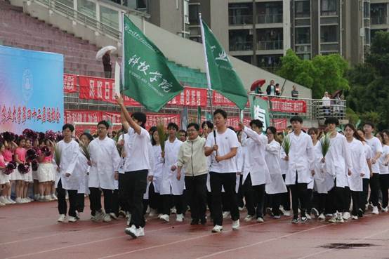 伴随着运动员进行曲的高昂曲调,草业科技学院的方阵队伍整装待发。他们英姿飒爽,踏着整齐的步伐,怀着昂扬的斗志,秉持不屈的精神走出了当代青年的风采。