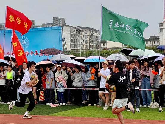 跳绳比赛中,学院长绳队员们训练有素,比赛全程迅速流畅,向大家展现了草业学子的青春与自信;拔河比赛中,我院运动员们个个卯足了劲,在体型没有优势的情况下,依然坚定目标,用行动展现着坚持不屈和永不言弃的运动精神;抱球迎面接力中,我院健儿团结、敢拼的精神得以体现,每一次的交接与冲刺不仅是对个人能力的挑战,更是对团队默契的考验,赛道两旁连绵的掌声与欢呼声就是对他们最好的肯定与赞美;毛毛虫竞速赛中,运动健儿们协作得“天衣无缝”,熟练和快速的交接过程是比赛背后默默无闻、辛苦训练的最好表现。