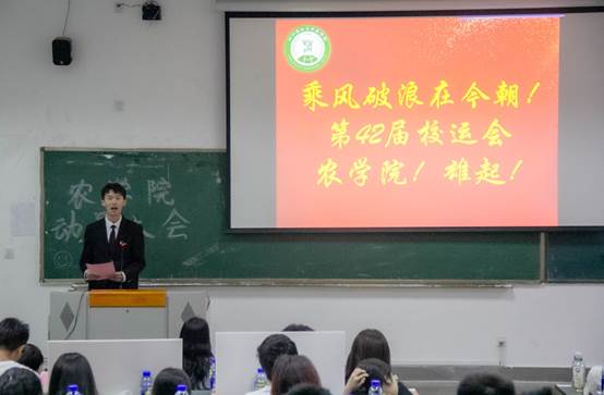 大会伊始,岑佳锐同学向与会人员详细介绍了农学院参加往届校运会的情况,并通过播放由农学院团委学生融媒体中心制作的往届校运会精彩瞬间视频,使参会人员对校运会有了更加直观而深刻的认识,同时也激发了本届运动员们的斗志。