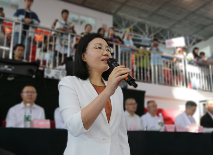党委书记庄天慧宣布第四十二届校运会总决赛开幕。