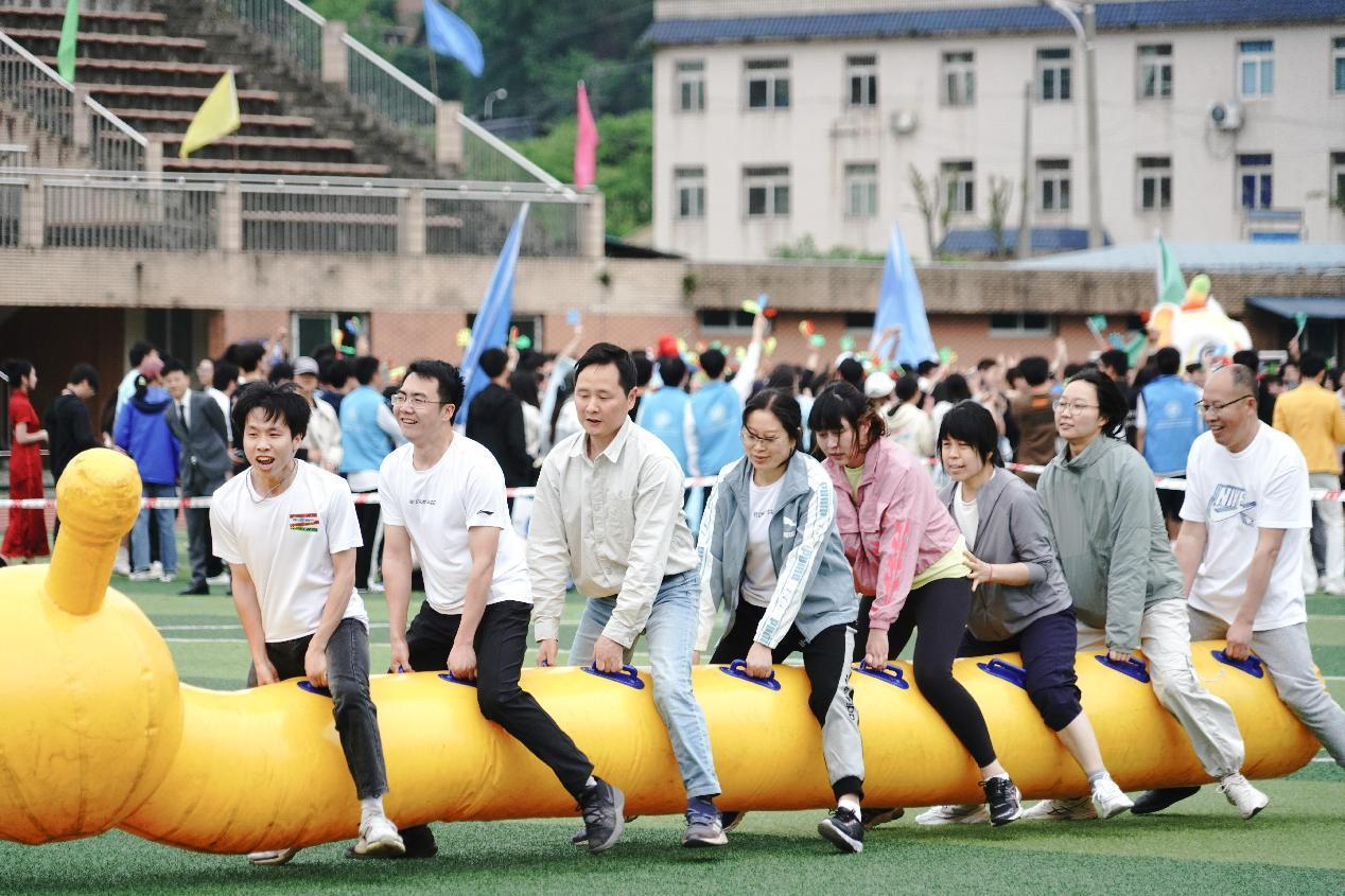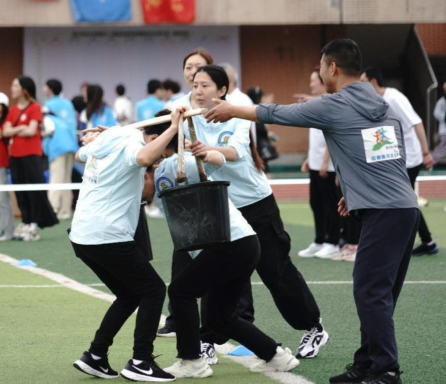教职工趣味运动会上,教师们神采奕奕,精心配合。修桥铺路,毛毛虫等团队活动上,他们数着节拍,一致阔步向前。无论是聚精会神盯准目标,迎风奔跑,全身心沉醉在运动中,迸发出蓬勃的活力。