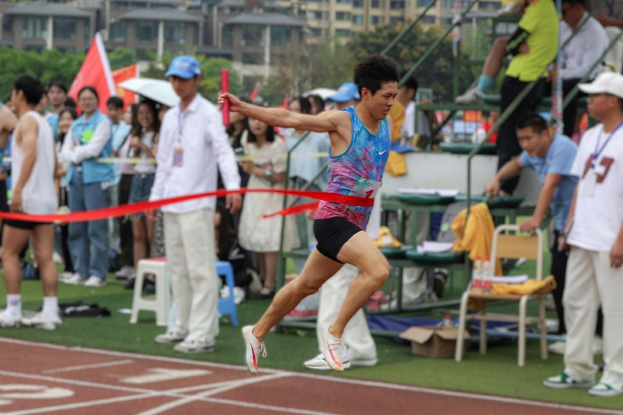 目视前方,竭力冲刺!跑道旁的观众欢呼声、呐喊声此起彼伏,汇成一片激昂的海洋。运动员们用力摆臂,疾速奔跑时,身体都腾空而起。终点冲线,挑战自我,与成功相拥!