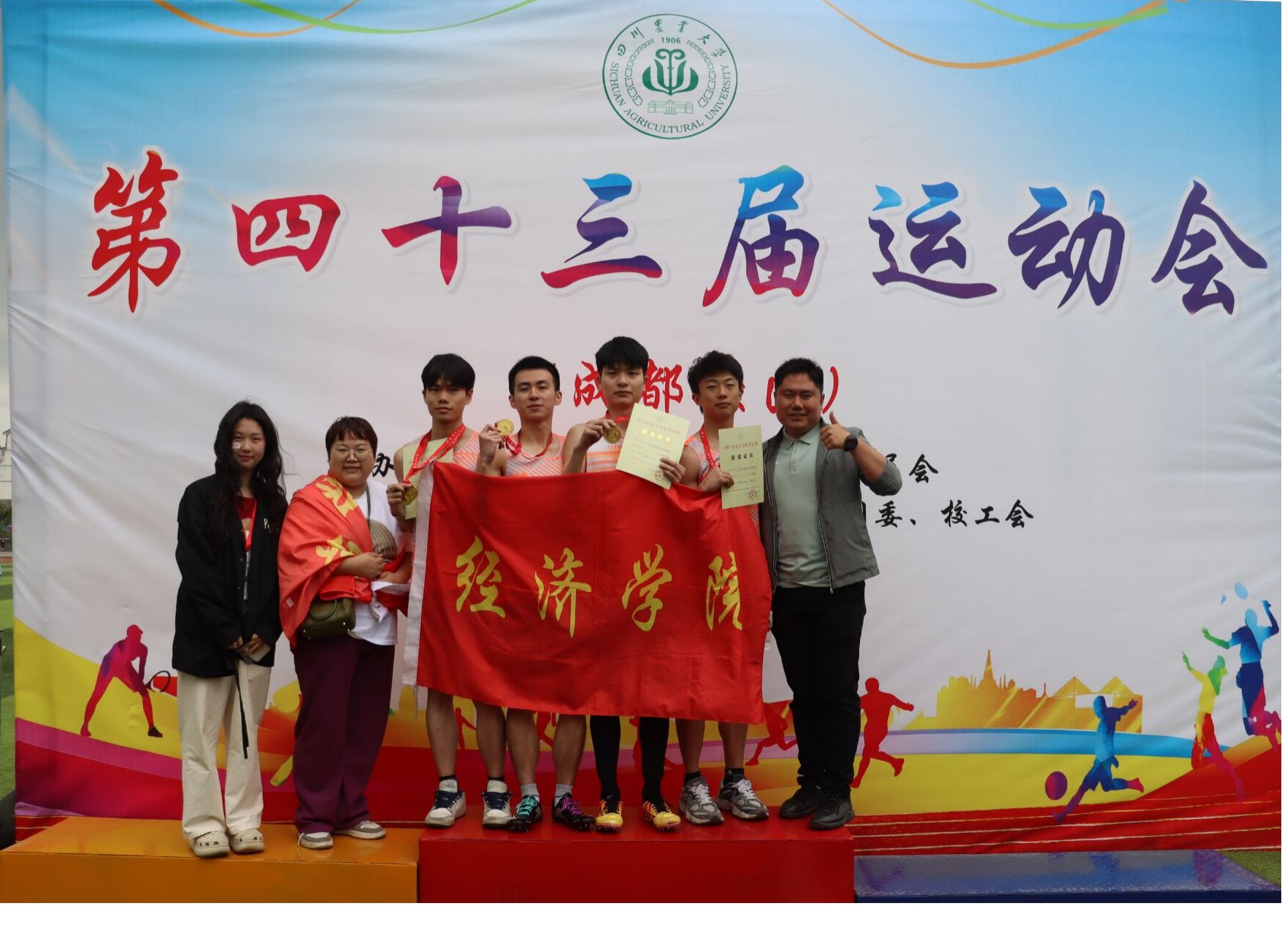 经济学院男女子4×100喜获佳绩,男子组勇夺第一名,女子组取得第三名的好成绩!