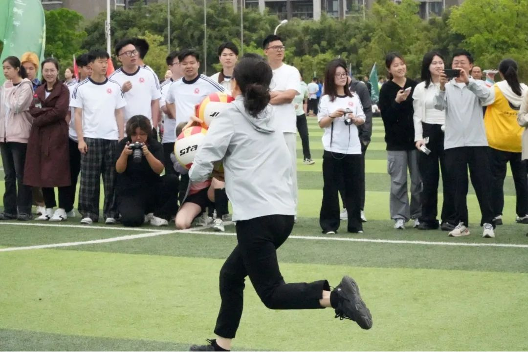 今日教职工运动会现场,多个趣味项目有序开展。抱球接力跑中,大家小心翼翼护球疾奔,在交接棒时默契配合;跳远场地,助跑、腾空、落地一气呵成,尽显运动风采;最热闹的当属毛毛虫竞速,队员们跨坐在充气道具上,齐声喊着口号,步伐一致向前冲。赛场洋溢着轻松欢乐的氛围,大家在运动中释放活力,收获满满乐趣与情谊。