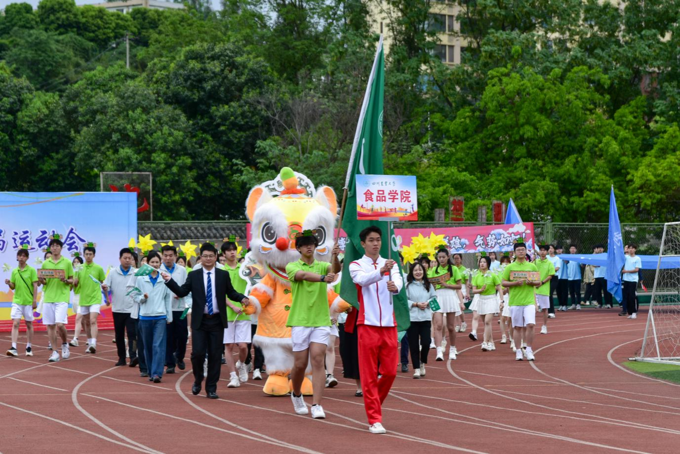 春风送暖,绿茵赛场燃激情。4月25日,万象城第四十三届校运会在全校师生的翘首期盼中拉开帷幕。食品学院师生以饱满如朝阳的热情、昂扬似劲竹的斗志投身赛事,以传承“川农大精神”为底色,将专业特色与体育精神深度交融,在运动场上绘就独具魅力的“食韵”画卷。