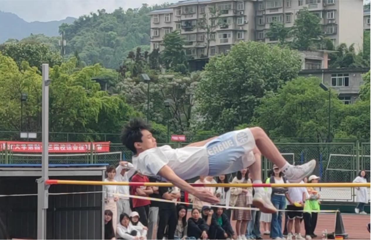 高中时代的自发练习虽不专业,却为他打下了扎实的爆发力基础。进入大学后,这颗梦想的种子由热爱与坚持浇注发芽:健身房里的深蹲架记录了他强化下肢力量的汗水,田径场边的沙坑见证了他反复调整助跑角度的专注。“跳高是身体与意志的双重博弈,唯有不留余力,才对得起热爱的初心。”从篮球场上的扣篮梦,到跳高赛场的冠军台,变的是目标,不变的是他对“向上”的执着追求。