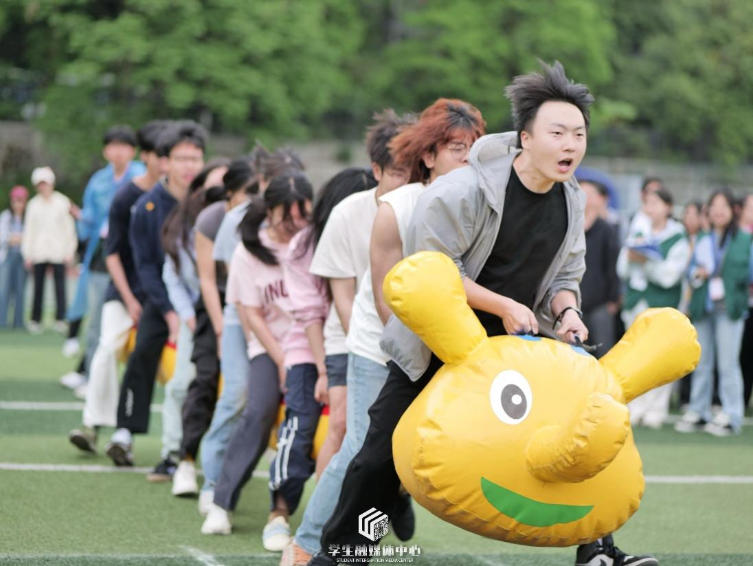 比赛采用充气式竞速道具,每支队伍由10名队员组成,需通过协调动作控制道具行进。经过激烈角逐,最终土木工程学院代表队摘得都江堰校区桂冠。