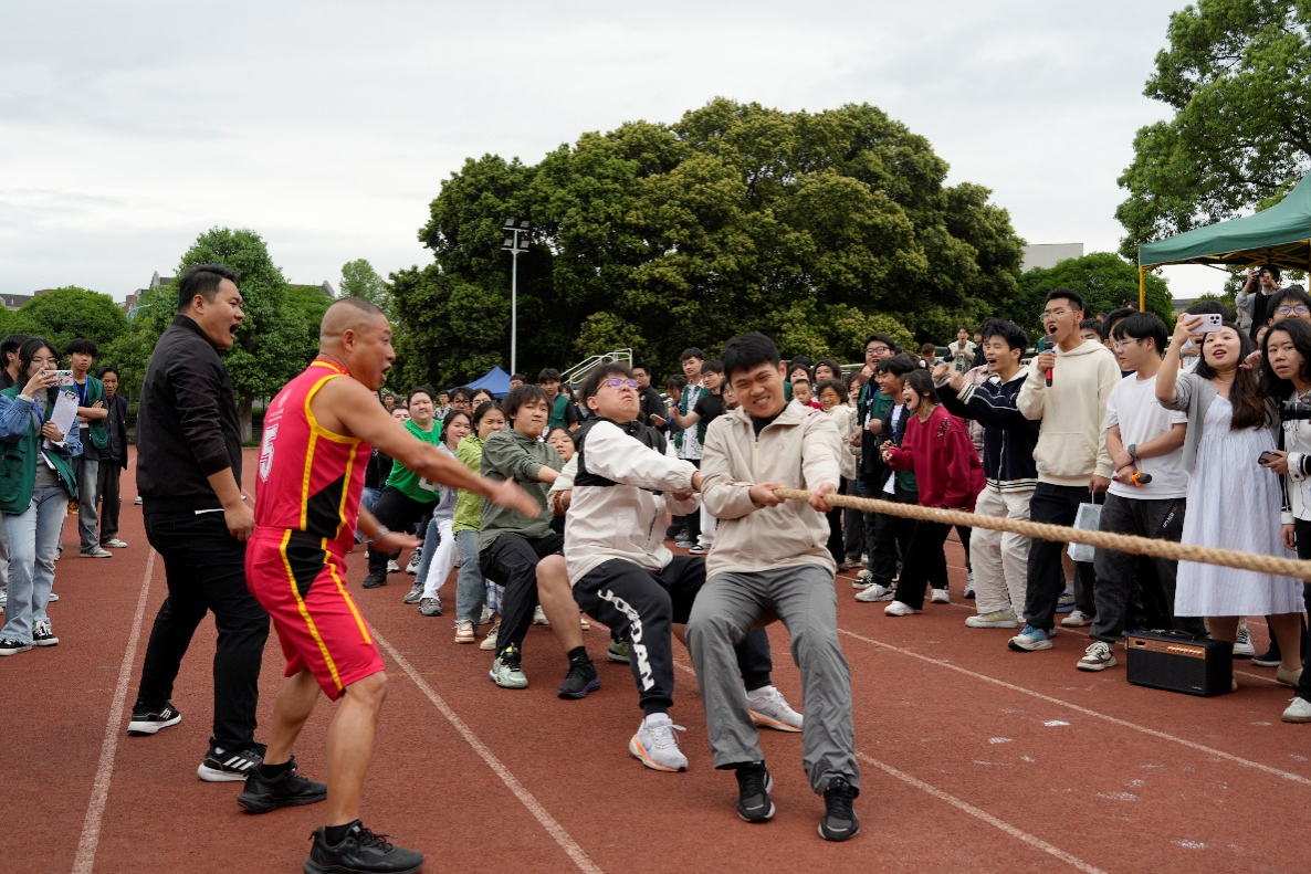 正式比赛当天,采用淘汰制进行角逐,每队共18名选手。随着裁判一声哨响,参赛队员紧握长绳、扎稳马步、身体后倾,在整齐的口号声中拼尽全力。绳中红线左右摇摆,胜负悬念迭起,场边观众挥舞旗帜,呐喊助威声震耳欲聋。经过2轮激烈角逐,土木工程学院代表队荣获冠军!