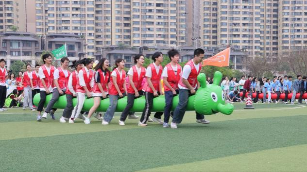 在三区操场,教职工趣味运动会精彩非凡,成为了本次运动会一大亮点。在趣味横生的团体项目里,教职工们热情高涨、踊跃投身。同学们也纷纷化作助威团,为老师们加油鼓劲。